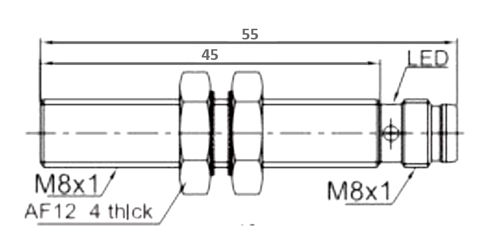 | Obudowa czujnika | M8; cylindryczna |