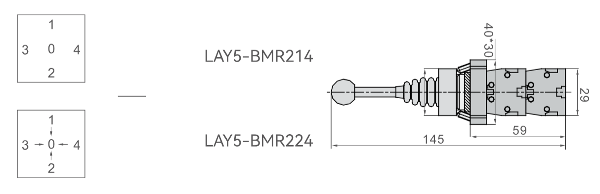 Joystick przemysłowy BMR224 - 4 pozycje powracające |