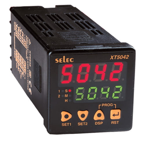 0 - 99.99 sek; 0 - 999.9 sek; 0 - 9999 sek; 0 - 99:59 min:sek; 0 - 999.9 min; 0 - 9999 min; 0 - 99:59 hr:min; 0 - 999.9 hr; 0 - 9999 hr |