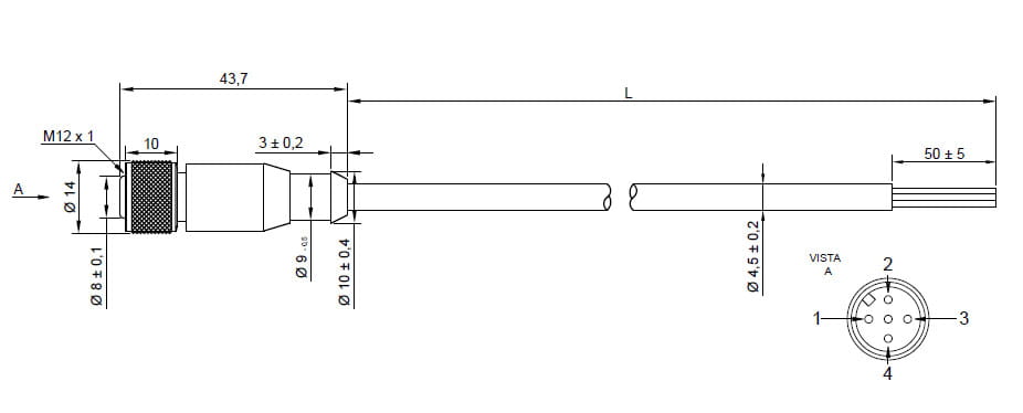 Wtyk żeński prosty M12 4-piny przewód 2m - N12FD4E22ZS |