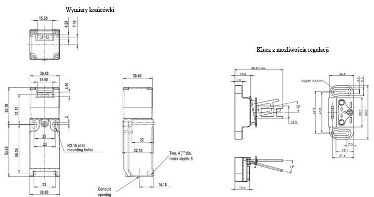 Wyłącznik bezpieczeństwa EK-1-55-A z kluczem nastawnym (możliwość regulacji) |