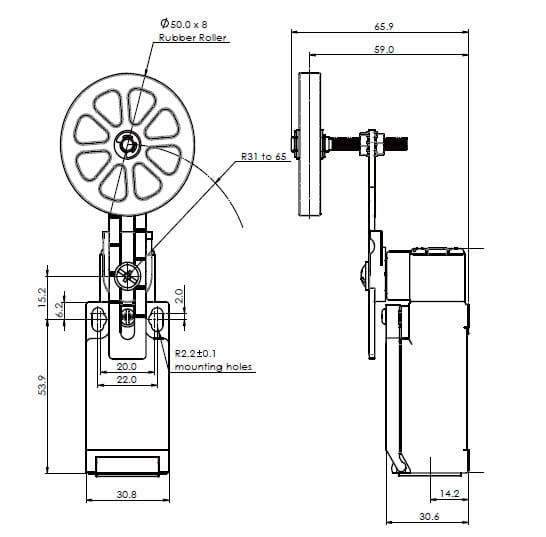 dźwignia z gumową rolką Ø50mm |