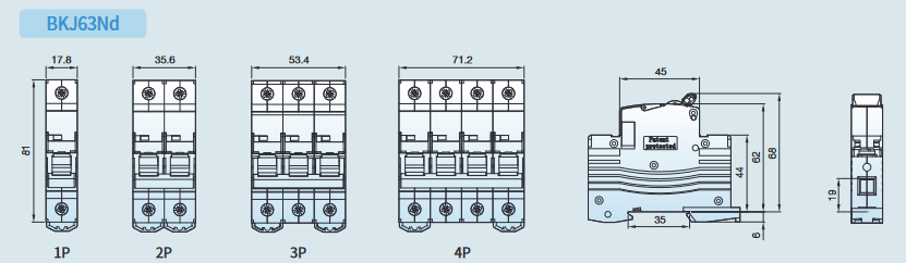 Wyłącznik nadprądowy BKJ63Nd 1P C2A (2A; C) |